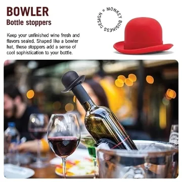Monkey Business Silicone Wine Stopper | Bowler Hat Design Set of 2