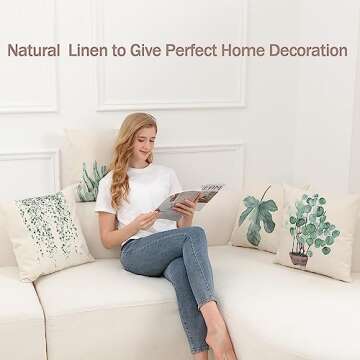 Show more Transform your home decor with our stunning collection of botanical-themed throw pillow covers. Made from high-quality, breathable linen, these decorative pillow covers not only enhance your space but also provide durability and style. Each pack contains four exquisite covers that feature beautiful, hand-painted designs that will elevate any room. With dimensions of approximately 18 x 18 inches, they are perfect for any setting – from your cozy living room to your chic bedroom.