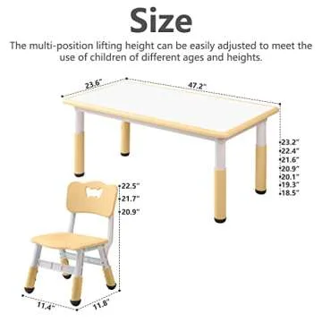monleelnom Children's Table and Chair Set Suitable for Boys and Girls Age 2-12 Height Adjustable Table top Can be Painted with 6 Seats Suitable for Family Learning Daily use (Wood Color)