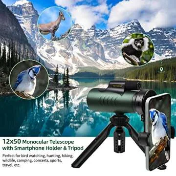 High Powered 12x50 Monocular Telescope with Smartphone Adapter and Tripod for Outdoor Exploration