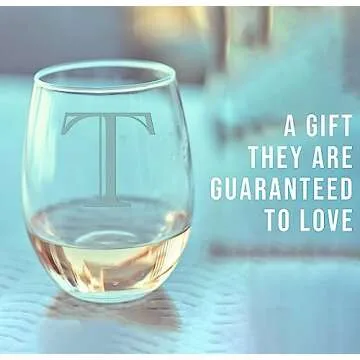 Monogram Etched 17oz Stemless Wine Glass (Letter T) A-Z Personalized gifts for Women, Custom wine glasses, Monogrammed Birthday gift for Her Initial