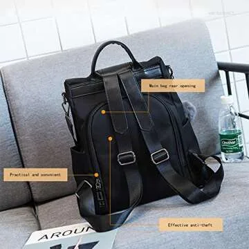 Show moreIntroducing the **Monond Women Backpack Purse**, the ultimate fusion of style, functionality, and security! Crafted with high-quality **waterproof nylon**, this sleek rucksack is designed to protect your belongings from the elements while maintaining a chic aesthetic. Its **anti-theft features**, including hidden zippers and secure compartments, ensure your valuables are safe whether you're commuting, shopping, or enjoying a weekend getaway. With a thoughtful blend of practicality and elegance, this backpack effortlessly fits into the lifestyle of the modern woman.
