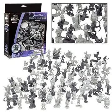 Show more Unleash your imagination with our incredible Fantasy Creatures Action Figure Set! Featuring a total of 98 pieces, this expansive toy collection includes an array of fantastical figures such as dragons, elf warriors, centaurs, orcs, skeletons, and so much more. Each character is uniquely designed and comes in two captivating colors - dark and light grey - allowing for imaginative battles straight out of your favorite RPG or fantasy story.