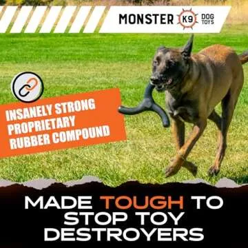 Show more Introducing the Monster K9 Ultra Durable Boomerang Dog Toy - the ultimate companion for super aggressive power chewers! Built specifically for medium and large breeds, this remarkable toy is engineered from a proprietary natural rubber compound that is not only puncture, chew, and tear resistant but also designed to provide a safe and flexible chewing experience. Its solid, heavy-duty construction means it can withstand the rigorous play of even the most destructive chewers, making it a favorite among dog owners with tough breed companions. After extensive lab testing, this toy has proven to exceed the durability of other tough chewer brands, ensuring that your dog can enjoy endless hours of playtime.