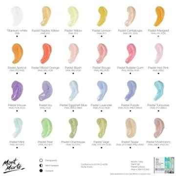 Mont Marte Acrylic Colour Pastel Paint Set - 24pc x 36ml (1.2 US fl.oz)
