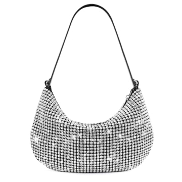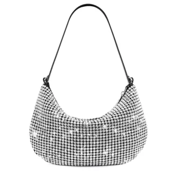 Show moreStep into the spotlight with the Montana West Rhinestone Purse, a dazzling accessory that combines elegance with functionality. This bling rhinestone half-moon shoulder bag is designed to make you stand out at any special event. Crafted with precision, it features a detachable chain strap for versatility, allowing you to switch from a clutch to a crossbody bag effortlessly. The interior is thoughtfully designed with 2 card slots and a zipper pocket, ensuring your essentials are secure and organized. A keychain is included for easy access to your keys, adding a touch of convenience to its stylish design.