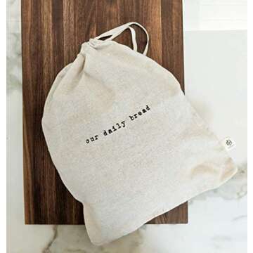 Montecito Home "Our Daily Bread" Set of 2 Natural Linen Bread Bags (15x12 Boule Bags), Reusable Drawstring Bag Homemade Bread Storage, Perfect for Bakers, House Warming