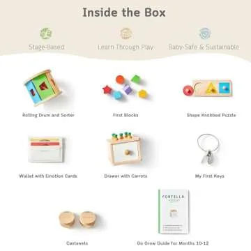 Show more Introducing the Go Grow Box Montessori Wooden Sensory Toys, designed specifically for babies aged 10-12 months, this collection is more than just a toy box—it's a comprehensive tool for fostering early development! Our brand focuses on holistic growth, enabling your child to explore and learn through play. The carefully curated selection targets all five domains of development: physical, cognitive, language, social-emotional, and adaptive, encouraging a well-rounded advancement in your child's skills.