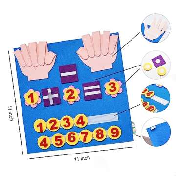 Montessori Learning Toddler Felt Educational Toy Finger Number Learning Counting Math Felt Board Preschool Manipulatives Travel Game Addition Subtraction 3+ Year Old Gift Activity Kindergarten, Blue