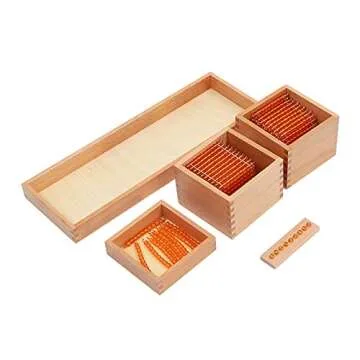 Show moreThis exquisite Montessori Mathematical Game is designed with young minds in focus, integrating the fun of learning with the essential lessons of the decimal system. Crafted by a reputable brand specializing in educational toys, this game uses golden beads to create a tangible learning experience that helps children grasp the complexities of mathematics in a simplistic manner. The vivid beads provide a concrete illustration of how the decimal system functions, allowing children to visualize and understand that there can only be nine in any position before moving to the next. It makes learning about large numbers not only manageable but also enjoyable.