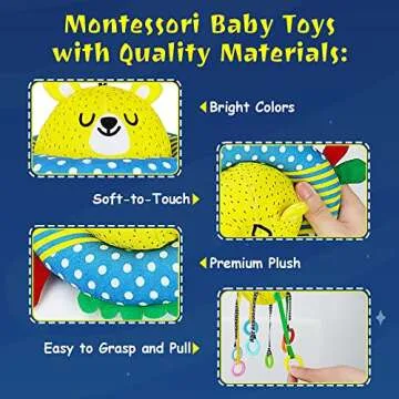Show moreIntroducing the Montessori Toys for 1+ Year Olds, a delightful fusion of fun and education designed to engage your little one in creative play. This pull string sensory toy helps exercise fine motor skills, intriguing children ages 6-12 months and beyond with its textured pull rope and vibrant rings. When pulled, the rope offers a satisfying sound that captivates babies, enabling them to explore the fascinating world of cause and effect. Packed with colorful designs and made from plush material, this toy prioritizes safety and comfort, perfect for tiny hands eager to learn.