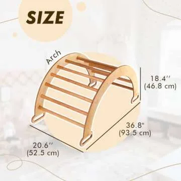 Show more The Goodevas Montessori Climbing Arch is a remarkable developmental toy designed to elevate your child's playtime experience. This wooden climbing structure is crafted from 100% hardwood, ensuring durability and safety while providing endless fun. Perfect for ages 6 months to 7 years, this arch empowers children to enhance their courage, hand-eye coordination, and balance as they navigate their growing bodies. Every child will feel a sense of accomplishment as they conquer the climbing challenge, making it not just a toy but a platform for growth.