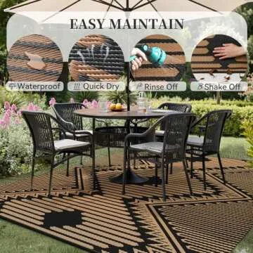 Show more Introducing the MontVoo Outdoor Rug – the ultimate solution for those seeking a stylish yet highly functional outdoor mat! This **5x8 waterproof patio rug** is meticulously crafted with a quality that combines both versatility and durability, making it perfect for all your outdoor adventures. Enjoy a quick dry feature that allows the rug to be effortlessly cleaned with just a rinse or wipe, so spills and dirt are no longer a hassle! Its unique breathable design promotes rapid evaporation, making it the ideal addition for high-traffic areas prone to moisture. Whether you want to enhance your backyard, pool deck, or balcony, this modern boho-inspired rug promises to elevate your outdoor decor while standing up to the elements with its UV-resistant coating.