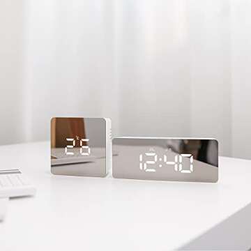 mooas LED Digital Mirror Clock 2 Types, Alarm/Snooze, Temperature, LED Mirror Clock (Rectangle)