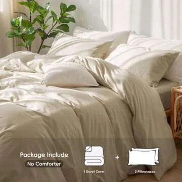 MooMee Bedding Duvet Cover Set 100% Washed Cotton Linen Like Textured Breathable Durable Soft Comfy (Almond Milk Grey, California King)