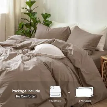 Show moreTransform your bedroom into a luxurious retreat with the MooMee Bedding Duvet Cover Set, expertly crafted from 100% washed cotton that resembles your favorite soft, comfy, well-worn cotton shirt. This duvet cover set is not only exceptionally breathable, allowing you to stay cool during the summer months and warm in the winter, but it also presents a stylishly relaxed aesthetic that makes it hard to resist lounging in bed all day long.