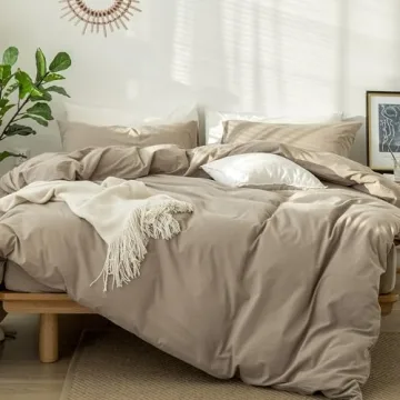 Introducing the MooMee Bedding Duvet Cover Set, crafted from 100% washed cotton that embodies the soft, cozy feel of your favorite well-worn shirt. This luxurious bedding set offers exceptional breathability, ensuring you remain cool in the summer and warm in the winter. The striking mocha brown color adds a touch of elegance to your bedroom decor, while the unique texture resembles linen, imparting a casual, resort-like ambiance in your space.