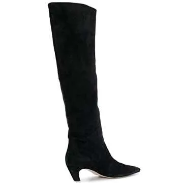 MOOMMO Women Black Kitten Heel Over Knee High Boots Square Toe Matte Pull On Wide Calf Pleated Low Heel Thigh Boots Stylish Retro Dress Boots Chic Party Comfy Chic Suede Black 7 M US