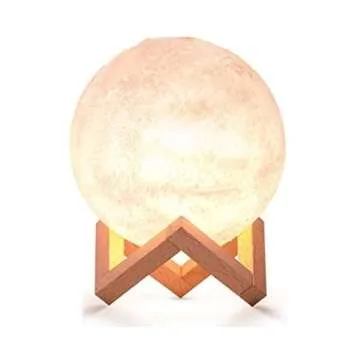 Show more Illuminate your space with the mesmerizing Moon Lamp 3D LED Dimmable Night Light, a stunning addition to any room that brings the magic of our celestial neighbor right into your home. Measuring 5.9 inches in diameter, this realistic moon lamp showcases intricately detailed craters and a textured surface that mimics the beauty of the actual moon. Perfect for children and adults alike, it creates a soothing ambiance with its warm glow, making it an ideal night light for cozy atmospheres.