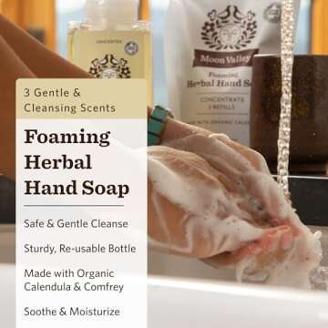 Why You Will Love This Product?With Moon Valley Herbal Foaming Hand Soaps, you’re not just choosing a product; you’re embracing a lifestyle that prioritizes health and sustainability. Each wash transforms a mundane task into a sensory delight, leaving your hands not only clean but adequately pampered and fragrant. You can confidently share these soaps with family and friends knowing you’re gifting them a wholesome, healthy alternative that aligns with their values. Enjoy washing your hands with a touch of luxury and a commitment to the planet!