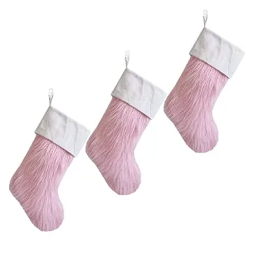 Show more Celebrate the magic of the holiday season with the MOONASE 3PCS Pink Lovely Christmas Stockings. Made with premium faux fur, these cozy stockings are not just a festive decoration but also a statement piece for your home. At 20 inches long, they provide ample space for all your holiday treats and surprises, making them perfect for both children and adults. The soft pink shade adds a whimsical touch to your festive decor, perfectly complementing any Christmas theme. You can easily hang them above the fireplace, on a decorative ladder, or around your Christmas tree, creating a heartwarming atmosphere that invites joy and happiness throughout your holiday celebrations.
