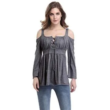 MOONCOLOUR Women's Cold Shoulder Lace Up Casual Tunic Solid Blouse Tops, Dark Grey, X-Large