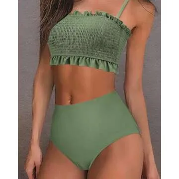 MOOSLOVER Women's Shirred Bandeau Bikini Top High Waisted Bottom 2 Piece Swimsuits Bikini Set
