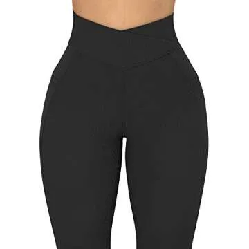 MOOSLOVER Women's V Cross Waist Butt Lifting Leggings with Pockets for Stylish Activewear