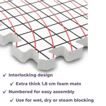 MOPALO Set of 9 Extra Thick Blocking Mats for Knitting, 25 Knit Blockers, 100 T-Pins - 12" x 12" Grid Boards for Knitting, Crocheting, Needlepoint - Complete with Measuring Tape and Storage Bag