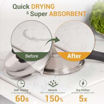 MophonicHome Stone Drying Mat for Kitchen Counter, Diatomaceous Earth Dish Drying Stone, Super Absorbent, Quick Dry, White Marble 15x11 inches