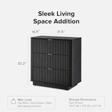 mopio Brooklyn 3 Drawer Dresser for Bedroom, Mid Century Modern Chest of Drawers, Wood Tall Nightstand, Waveform Fluted Side Table, Enhanced Safety, ASTM F2057-23 Sturdy Compliant (Black)