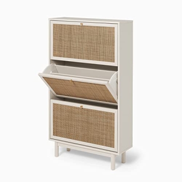 Show moreIntroducing the mopio Hannah Shoe Cabinet, a breathtaking blend of sleek design and functionality tailored to elevate your entryway while keeping your space decluttered. With its stunning natural rattan door design, this cabinet effortlessly integrates rustic charm into any décor, making it an ideal addition for those seeking both practicality and aesthetics. Measuring at 29.5 (W) x 9.8 (D) x 51.5 (H) inches, this generous cabinet not only provides ample storage for up to 10 pairs of shoes but exudes elegance through its visually pleasing structure.