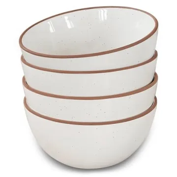 Mora Ceramic Bowls For Kitchen, 28oz - Bowl Set of 4 - For Cereal, Salad, Pasta, Soup, Dessert, Serving etc - Dishwasher, Microwave, and Oven Safe - For Breakfast, Lunch and Dinner - Vanilla White