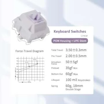Show moreIntroducing the Morandi Keyboard Switches—the ultimate upgrade for your mechanical gaming keyboard. Designed for both gamers and typists alike, these 5-pin pre-lubed linear key switches provide a crisp, smooth typing experience with an initial force of 35gf and an end force of 60gf. With a total travel distance of 3.80±0.3mm, each key press inspires confidence, allowing you to conquer gaming sessions or conquer that next big project without fatigue.