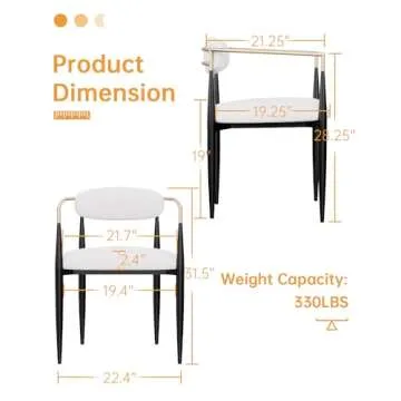Morden Fort Modern Boucle Dining Chairs with Luxury Upholstered Backrest, White Armchairs Set of 2 for Kitchen Reception Room Living Room Restaurant Café