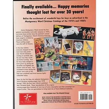 Show moreStep into a nostalgic journey with More Boys' Toys of the 70's & 80's, a captivating book that brings to life the toys that defined a generation. This collection showcases a stunning array of toy pages extracted directly from the iconic Montgomery Ward Christmas catalogs spanning 1970 to 1985. The beautifully reproduced images capture the essence of childhood joy, allowing readers to relive their fondest memories while discovering stories behind each beloved toy. Ideal for collectors, historians, and anyone with a penchant for vintage memorabilia, this book is not just a visual treat but also a historical artifact that showcases the evolution of play throughout the decades. Its good condition ensures that the pages are perfectly preserved so you can enjoy exploring classic toys in vivid detail.