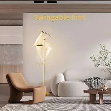 Show more Introducing a stunning addition to your home decor, the Creative Bird Shade Floor Lamp. Adorned with a fascinating bird motif, this lamp not only serves as a light source but also as a striking piece of art. Crafted from environmentally friendly PP material, it allows for excellent light transmission and ensures uniform illumination. With high-temperature resistance, flame retardance, and anti-static properties, this lamp is built to last while prioritizing safety.