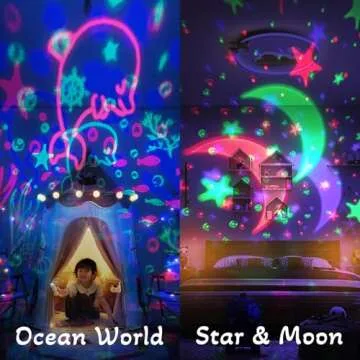 Transform your child's room into a mesmerizing wonderland with the Moredig Ocean Light Projector. This enchanting night light isn’t just a soothing presence—it’s a vibrant display that helps children drift off to sleep surrounded by their favorite marine or celestial companions. Perfectly crafted for kids, this projector offers two themed shades: the serene ocean with colorful sea creatures and an awe-inspiring starry sky. Say goodbye to bedtime anxieties and create an environment where...
