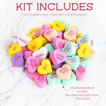 MOREDOTS Valentines Day Decorations - Valentines Decor - Conversation Hearts Vase Filler Set - Sweet Floral Arrangement Home Decoration Centerpieces for Tables Mantel