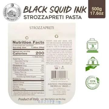 Morelli Strozzapreti Pasta al Nero di Seppia - Black Squid Ink Pasta Imported from Italy 500g