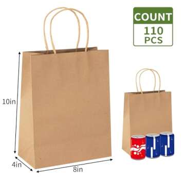 Moretoes 110pcs Paper Bags with Handles Gift Bags Brown Paper Bags, 8x4x10 Inch Medium Sizes Gift Bags Bulk, Paper Bags for Small Business, Shopping Bags, Retail Bags, Party Bags, Favor Bags