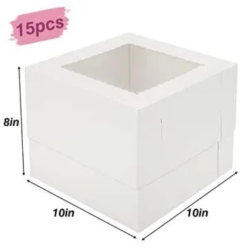 Moretoes 15pcs Cake Boxes, 10x10x8 Inch, Elegant Bakery Boxes with Window