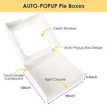 - Perfect Size: Each box measures 10x10x2.5 inches, ideal for a variety of baked goods including pies, cakes, donuts, muffins, and cookies.