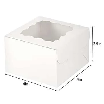 Show moreIntroducing the Moretoes 30 Packs White Bakery Boxes, the ideal solution for anyone looking to beautifully package and showcase their baked goods. Each box measures a perfect 4x4x2.5 inches, making them the perfect fit for a range of delightful treats including cookies, cupcakes, and small cakes. With a transparent open window adorning the top, you can effortlessly display your delicious creations, ensuring that your gifts are as visually appealing as they are tasty. These boxes aren’t just functional; they are designed with love, featuring elegant thank you stickers that add a personal touch to every gift.