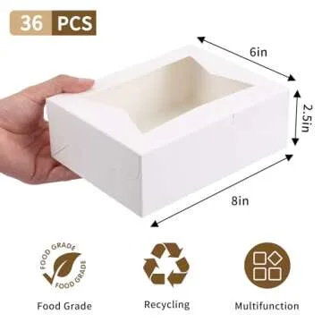 Moretoes 36pcs Cookie Boxes, 8x6x2.5 Cookie Boxes with Window, Strawberry Boxes Bakery Boxes Easter Treat Boxes for Chocolate Covered Strawberries, Pastries, Desserts