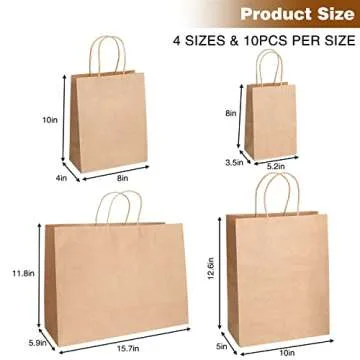 Moretoes 40pcs Brown Paper Bags with Handles Assorted Size Gift Bags, Kraft Paper Bags, Paper Shopping Bags, Craft Bags, Merchandise Bags