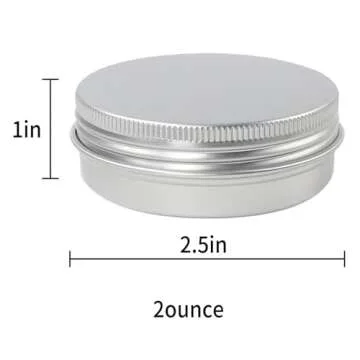 Show moreDiscover the ultimate organizing solution with the Moretoes 48 Pack 2 Oz Metal Round Tins. Crafted from premium aluminum, these containers are not only designed for durability but also to make your life easier with their lightweight and robust construction. Each tin features a tightly sealed spiral torsion lid that effectively prevents leakage, ensuring your contents stay safe and secure. These tins are beautifully finished in a sleek silver color, making them a stylish addition to your home, workspace, or on-the-go endeavors. With a height of just 1 inch and a diameter of 2.5 inches, they're compact yet spacious enough to hold a variety of items, from ointments to spices and everything in between!