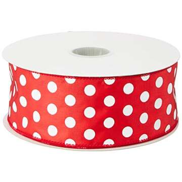 Morex Ribbon Wired Holiday Dots Polyester Ribbon, 2-1/2"/50 yd, Red/White