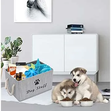 Morezi Canvas Pet Toy and Accessory Storage Bin, Basket Chest Organizer - Perfect for Organizing Pet Toys, Blankets, Leashes and Food - Grey