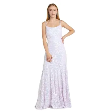 Unveil your inner fashionista with the stunning Morgan & Co Women's Juniors Metallic Mesh W/Sequins Embellishments Prom Dress in Lavender! This exquisite dress transcends traditional prom attire, bringing unparalleled elegance with its all-over sequin pattern that glistens under the lights. Designed specifically for juniors, this sleeveless long dress features chic spaghetti straps and a delicate scoop neckline, offering a touch of sophistication while maintaining youthful charm. The brilliant...